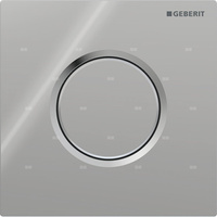 Przycisk uruchamiający Geberit typ 10 do zaworu spłukującego do pisuarów z pneumatycznym uruchamianiem spłukiwania, płyta i przycisk: lakierowane na kolor chrom matowy, z powłoką easy-to-clean, pierścień ozdobny: chrom błyszczący