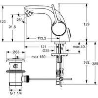 Bateria elektroniczna GEBERIT Typ 185 z mieszaczem i pokrętłem, kolor chrom (błyszczący)
