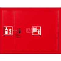 Hydrant DN 33 wnękowy z miejscem na gaśnicę obok zwijadła, wąż 20 m, ocynk fasada, zamek patent, RAL 3000