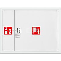 Hydrant DN 33 wnękowy z miejscem na gaśnicę obok zwijadła, wąż 30 m, ocynk fasada, zamek patent, RAL 9003