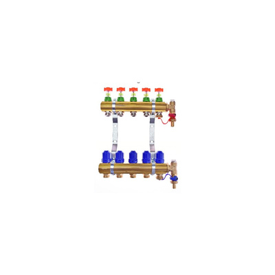 Rozdzielacz do ogrzewania podłogowego QIK Optimo BASIC III PC - RMSZT-2-50 2,5l 5-obieg. mosiądz GW 1'' x GZ 3/4'' + przepływomierz