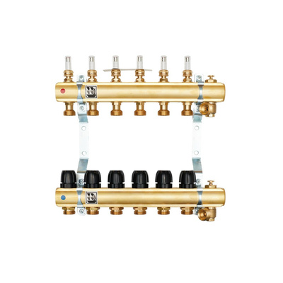Rozdzielacz do ogrzewania podłogowego QIK MAGNET 6-obieg. mosiądz GW 1'' x GZ 3/4'' + przepływomierz