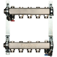 Rozdzielacz do ogrzewania podłogowego HERZ 7-obieg. stal nierdzewna GW 1'' x GZ 3/4'' + zawór napełn/spust + odpowietrznik