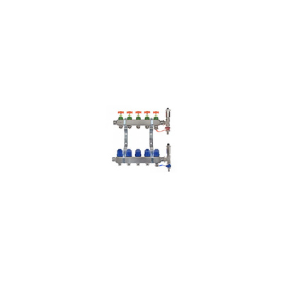 Rozdzielacz do ogrzewania podłogowego QIK Optimo STANDARD III PC - RNZT-1-50 2,5l 5-obieg. inox GW 1'' x GZ 3/4'' + przepływomierz