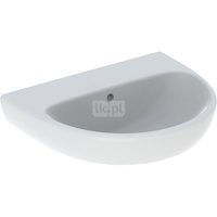 Umywalka GEBERIT Selnova owalna, biała, 500mm, otwór na baterię na środku, z odpływem przelewowym, półka od ściany