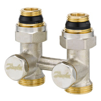Zestaw grzejnikowy: termostat Uni LH 0*1-5 (0-28'C) + zawór termostatyczny AV9 kolanowo-kątowy prawostronny + zawór odcinający kątowy, DN15