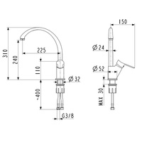 FAB07 Bateria FABIO zlewozmywakowa wysoka stojąca głowica 40