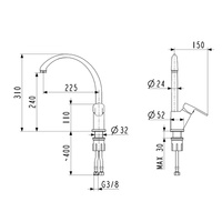 PAO07 Bateria PAOLA ze stali nierdz. zlewozmywakowa wysoka stojąca głowica 35