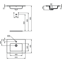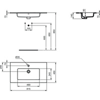 Umywalka IDEAL STANDARD CONNECT prostokątna (zaokrąglone krawędzie), biała, 500mm, bez otworu na baterię, nakładany od góry, bez odpływu przelewowego
