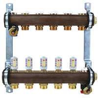 Rozdzielacz do ogrzewania podłogowego HERZ 6-obieg. mosiądz GW 1'' x GZ 3/4'' + przepływomierz + zawór napełn/spust + odpowietrznik