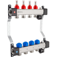 Rozdzielacz InoxFlow z zaworami do siłowników i przepływomierzami (seria UFST MAX) - 4 obwody