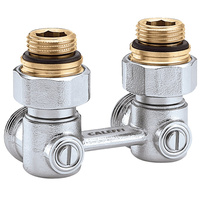 Podwójny zawór podłączeniowy do grzejników płytowych. Wersja kątowa - 1/2'' GZ