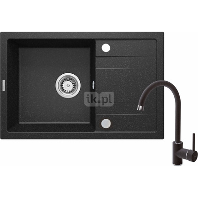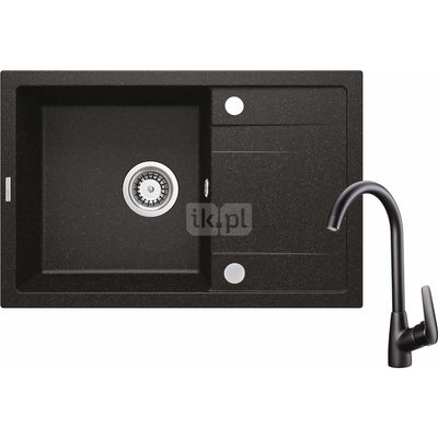 Zlew. corio grafit granit 1k z/o 670x440x175, 3,5" + bateria z wylewką "u" nero + osprzęt space-saver + zaślepka otworu
