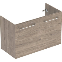 Szafka pod umywalkę meblową Geberit Selnova Square, slim, z dwoma drzwiami: B=98.8cm, Szerokość umywalki=100cm, H=63.5cm, T=50.2cm, Orzech włoski hickory / Melamina, struktura drewna