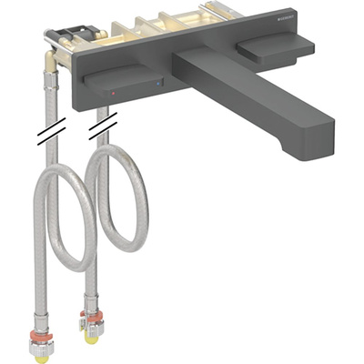 Bateria umywalkowa Geberit Brenta, ścienna, zasilanie generatorowe, do podtynkowej skrzynki funkcyjnej, bez mieszacza, L22, czarny mat