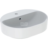 Umywalka GEBERIT Variform owalna, biała, 550mm, bez otworu na baterię, stawiana na blat, bez odpływu przelewowego, bez półki