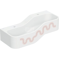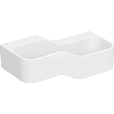 Umywalka GEBERIT Bambini 2-stanowiskowa prostokątna (rynna, elementy dekoracyjne), biała, 900mm, bez otworu na baterię, bez odpływu przelewowego, półka od ściany