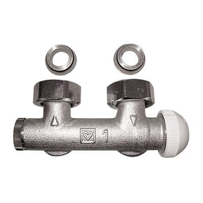 Zestaw przyłączeniowy grzejnikowy dwururowy HERZ TS-3000 (3691) 3/4'' x 3/4'', rozstaw 50 mm, zawór prosty przystosowany termostatycznie