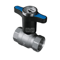 Zawór kulowy HERZ MODUL mosiądz niklowany, PN25 DN 32 GW z termometrem, uchwyt: motylek