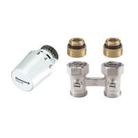 Zestaw do grzejników dolnozasilanych: głowica T5019 + Zawór podwójny, prosty, podwójny z odcięciem, 1/2" V2496DY015
