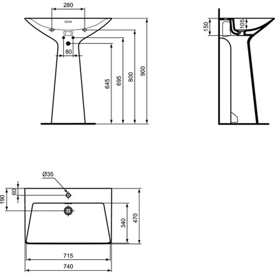 EXTRA Umywalka 80 3TH White IP
