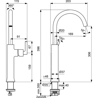 CERALINE Bateria umywalkowa RMTD SBLK 5LPM UK