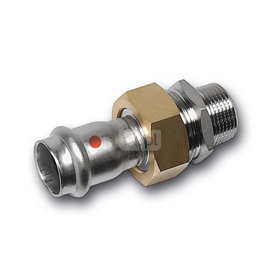 Śrubunek SANHA NiroTherm Press z uszczelką i nakrętką z mosiądzu trzyczęściowy, stal nierdzewna, 35 mm x 1 1/4'' (zw x GW)