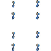 Przepustnica bezkołnierzowa SYLAX z napędem pneumatycznym SOCLA dwustronnego działania (ciśnienie powietrza zasilającego 6 bar), dysk: AISI316, wykładzina: EPDM, korpus: GG25 epoksyd., Pnom 1,6 MPa, tmax=120 st.C DN 200