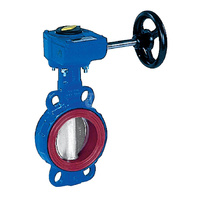 Przepustnica bezkołnierzowa SYLAX z przekładnią ślimakową, dysk: AISI316, wykładzina: silikon, korpus: GGG40 epoksyd., Pnom 1,0 MPa, tmax=200 st.C DN50