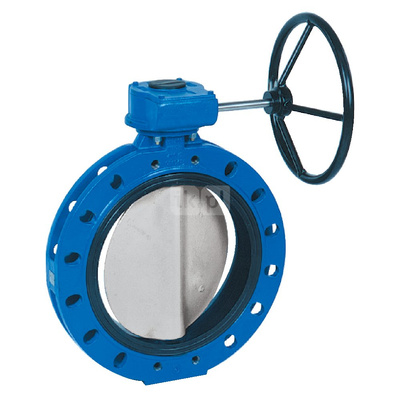 Przepustnica kołnierzowa SYLAX z przekładnią ślimakową, dysk: AISI316, wykładzina: NBR, korpus: GGG40 epoksyd., Pnom 1,6 MPa, tmax=85 st.C DN600