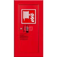 Hydrant DN 52 wnękowy boczny z koszem, z miejscem na gaśnicę, wąż 20 m, zamek patent, RAL 3000 prawy