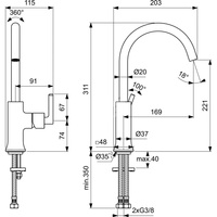 Bateria alpinia nero umywalkowa z podwyższonym korpusem