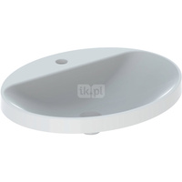 Umywalka GEBERIT Variform eliptyczna, biała, 600mm, bez otworu na baterię, wpuszczana w blat, z odpływem przelewowym, bez półki