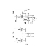 Bateria wannowa ścienna KFA Armatura DIAMENT, kolor chrom