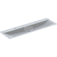 Umywalka GEBERIT Xeno2 2-stanowiskowa prostokątna, biała, 1400mm, otwór na baterię z lewej i prawy, nakładany od góry, bez odpływu przelewowego, półka od ściany